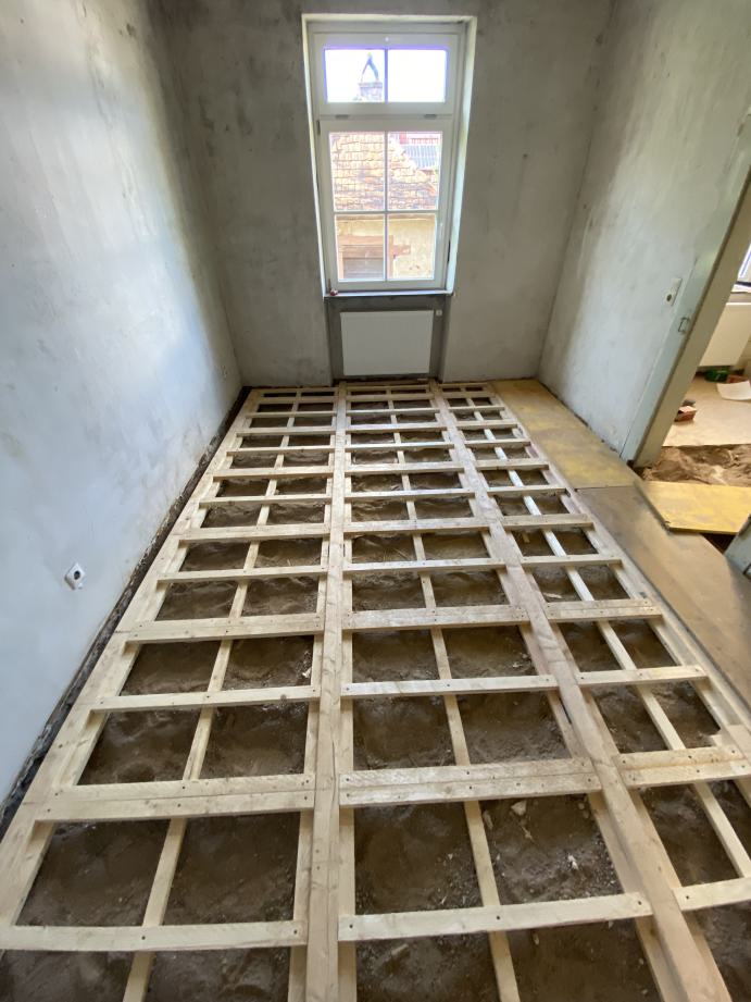 Nachdem einer unserer fleissigen Helfer fast in den Keller gestürzt wäre, als der Boden unter ihm nachgab, wurde beschlossen, den Boden grundlegend zu erneuern.