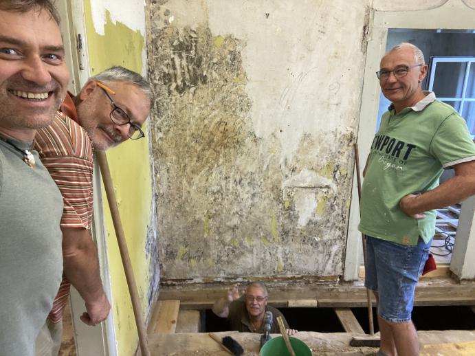 Aufgrund des schlechten Zustands mussten im Erdgeschoss die beiden nordwestlichen Räume komplett saniert werden. Der Fussboden wurde erneuert.