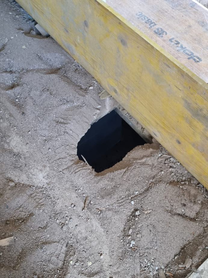 An der Stelle mit dem Durchbruch in den Keller wurden die unter dem Boden liegenden Latten (die die Decke des Kellers bilden) erneuert. Dabei musste teilweise von unten nach oben gearbeitet werden.